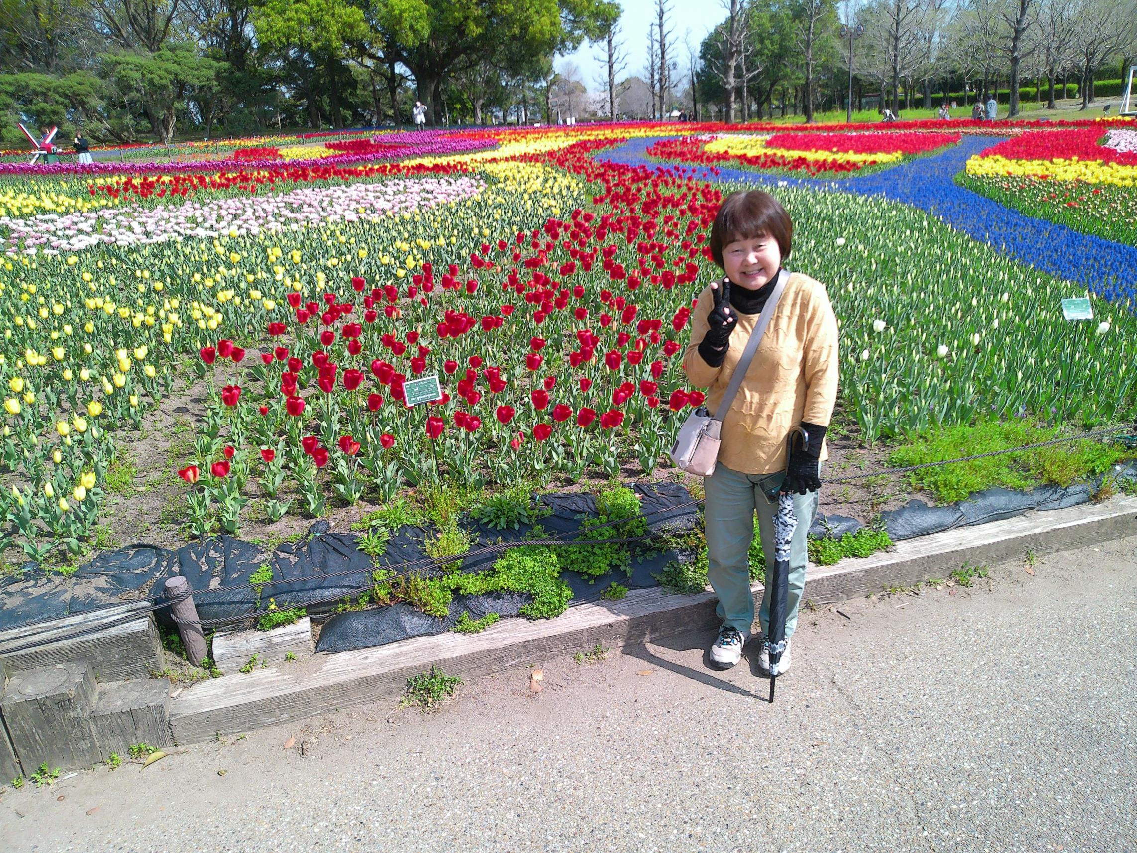大花壇は色とりどりのチュ−リップが見事に咲いている