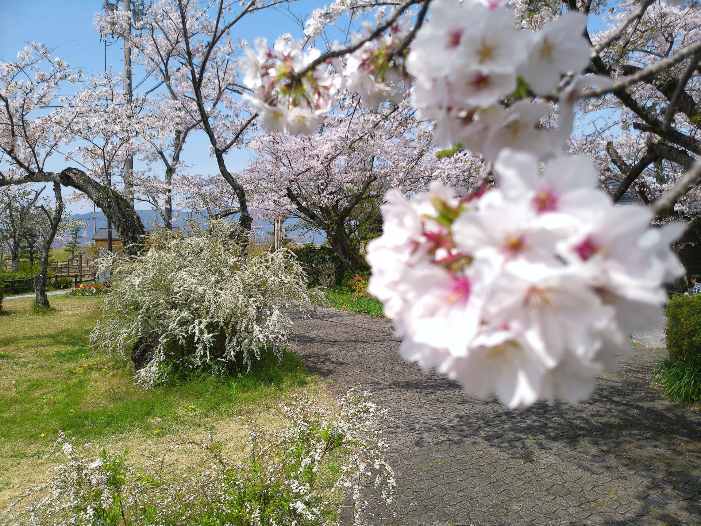 ソメイヨシノとユキヤナギのコラボが、中々良い感じで撮れた