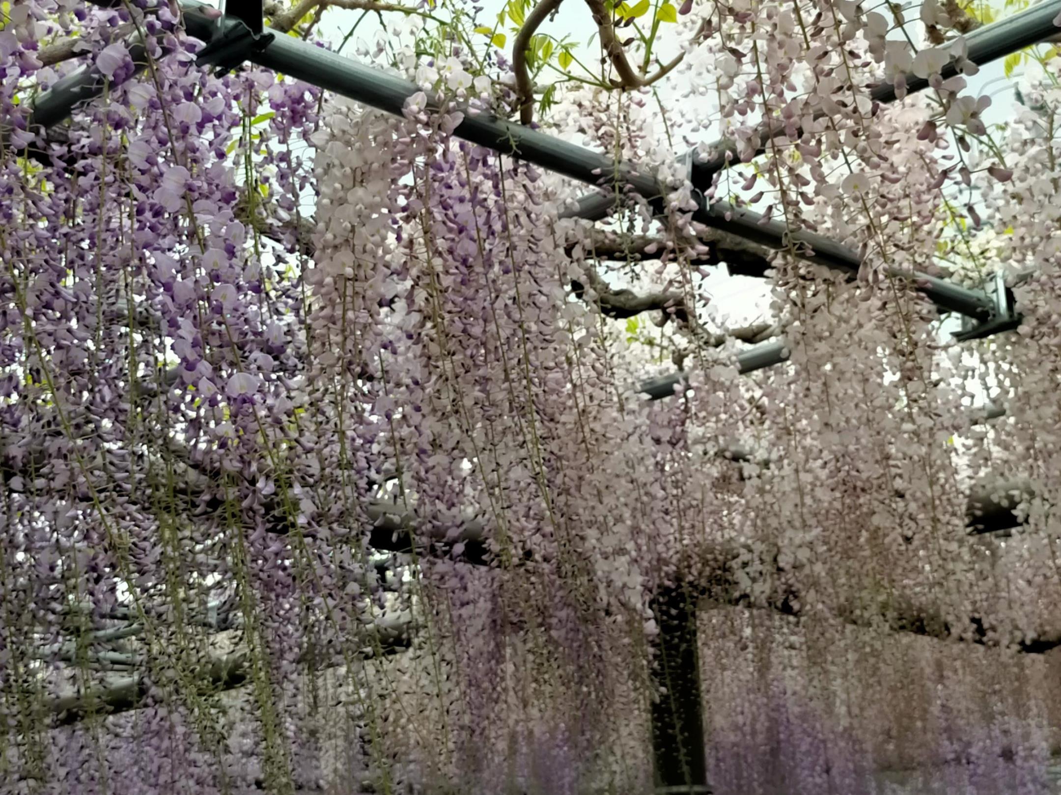 藤棚の回廊で写真を撮って、本日の藤巡りを終了