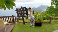 美浜テラスに座って、三方五湖の絶景を楽しむ