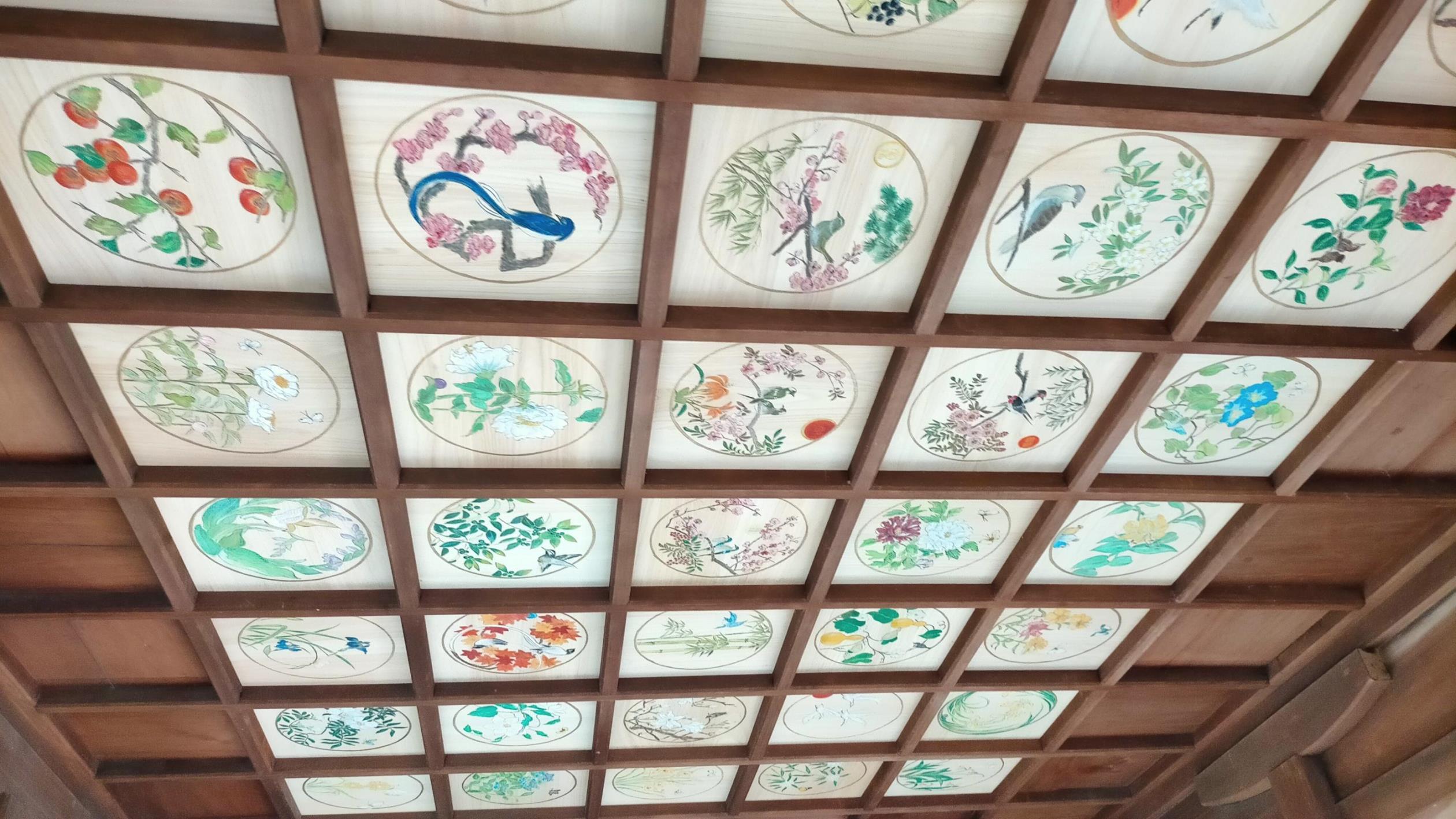 拝殿の天井に絵がいっぱい描かれている キレイなので最近描かれたものと思われる