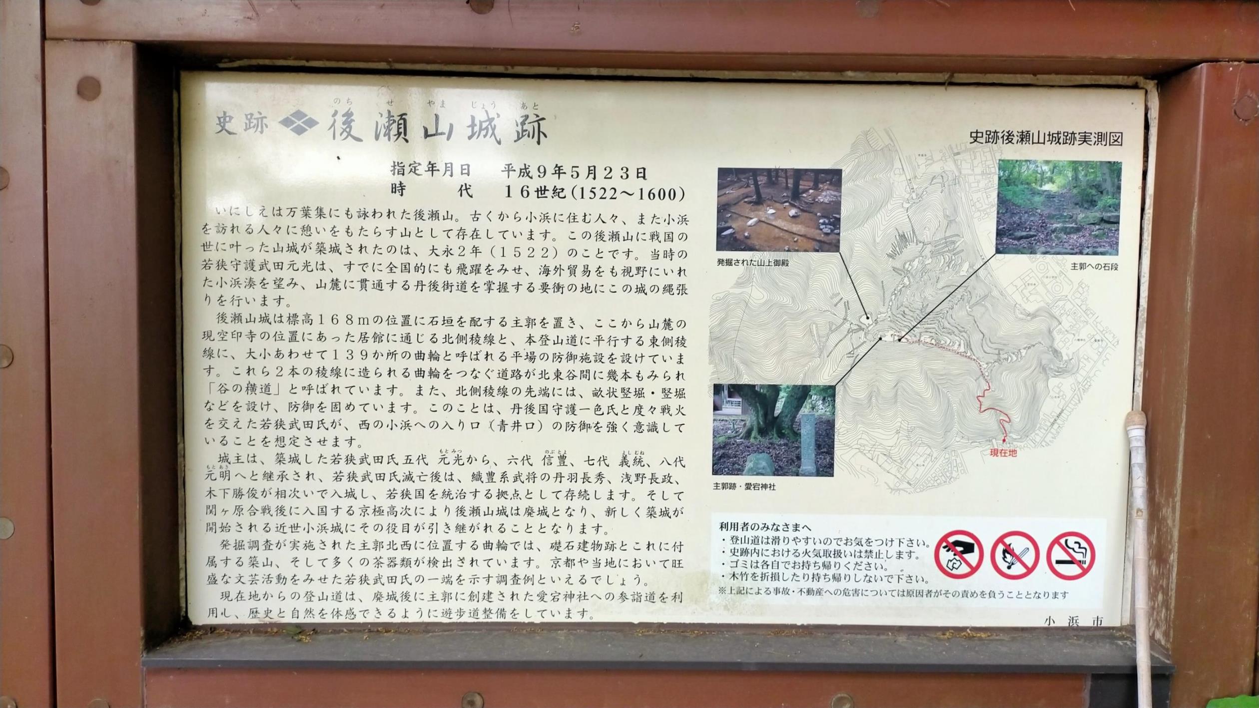 後瀬山城は、大永2年(1522)に若狭守護武田元光によって築かれたとある