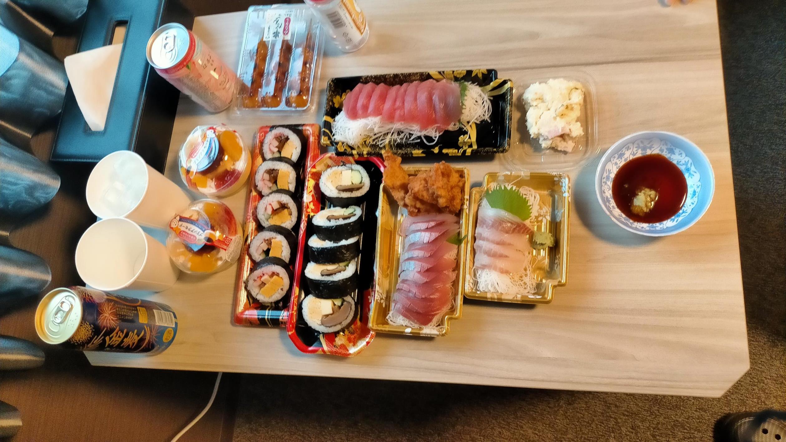ホテルは夕食が無い 大浴場に入った後、買って来た刺身で一杯やるのも楽しみの一つ